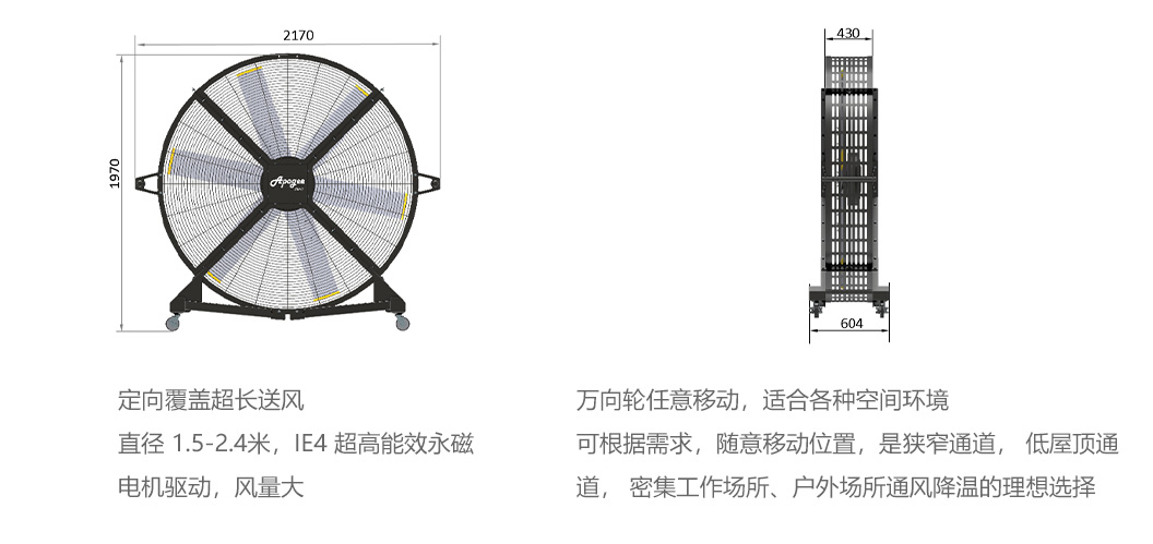 MDM 系列是移動式大風扇, 適用于一些特定場所由于空間受限不能頂部安裝大風量低轉速吊扇, MDM 是一個較為理想的解決方案, 產(chǎn)品適合于狹窄通道, 低屋頂通道, 密集工作場所,或需要特定風量的應用場所。