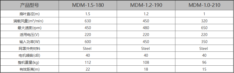 MDM采用永磁無刷電機直接驅動, 電機高效節(jié)能, 超高可靠性,扇葉采用高強度鋁鎂合金,流線結構扇葉大化風量及風扇覆蓋距離, 相比低成本鈑金扇葉, 流線結構扇葉有更好出風效率,氣流平穩(wěn)性,靜音效果。 產(chǎn)品適合室內,室外使用, 方便實用