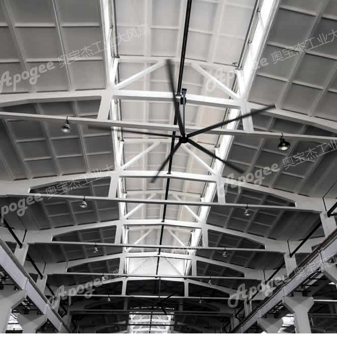混凝土廠房里工業(yè)吊扇是解決空氣流通,通風降溫的既高效又性價比優(yōu)的方法。